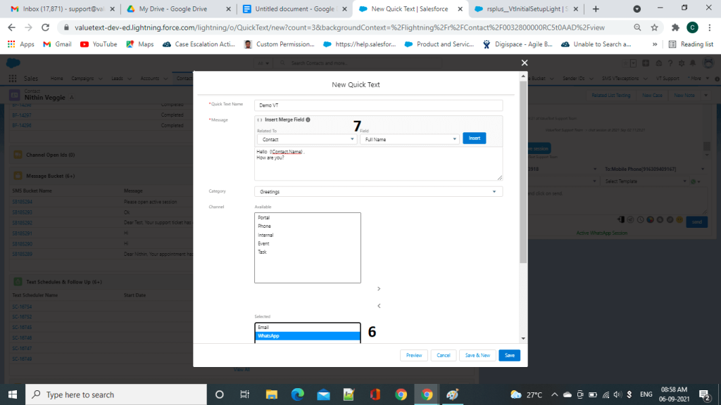 Note: Add a picklist value for the Channel field in the Quick Text object.