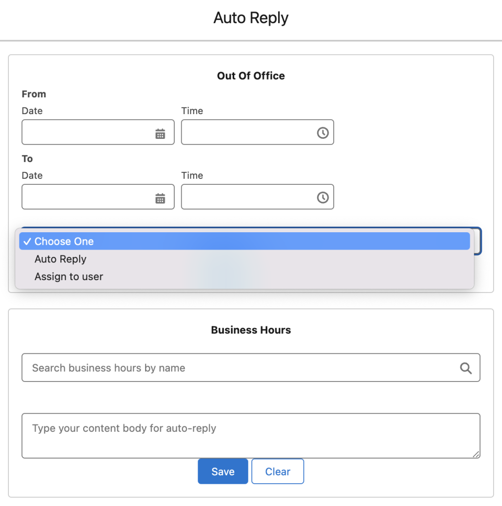 Automatically sends the reply text you enter in the text box to the user during the out-of-office period. - Assign to user