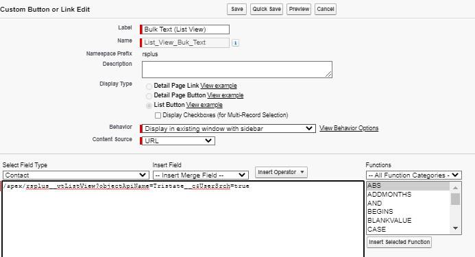 How to create a “Bulk Text (List View)” button for Custom Object: