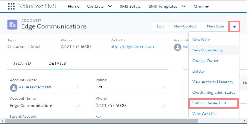 “Message on Related list” also lets you send text messages to a list of child records as long as there is a relation between the objects.