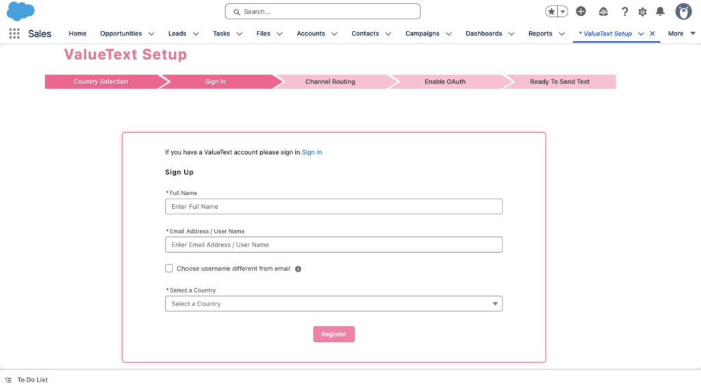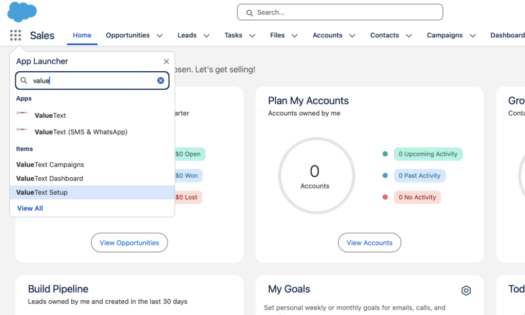 Open the App Launcher, search for ValueText, and open ValueText Setup from the list.